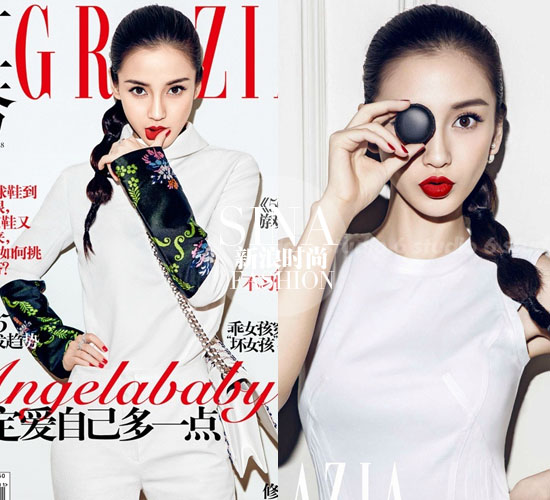 本著劉亦菲PK楊冪的原則,第三名給了《紅秀》封面的Angelababy 。白得不能再白的背景,透著嘴上的紅唇不能再紅。誰讓人家是黃教主的女朋友呢,不美怎能撐得起門面。大拇指微微挑逗的嘴唇,配上秒殺你的犀利眼神,看到了美麗之外也看到吃定你的決心。