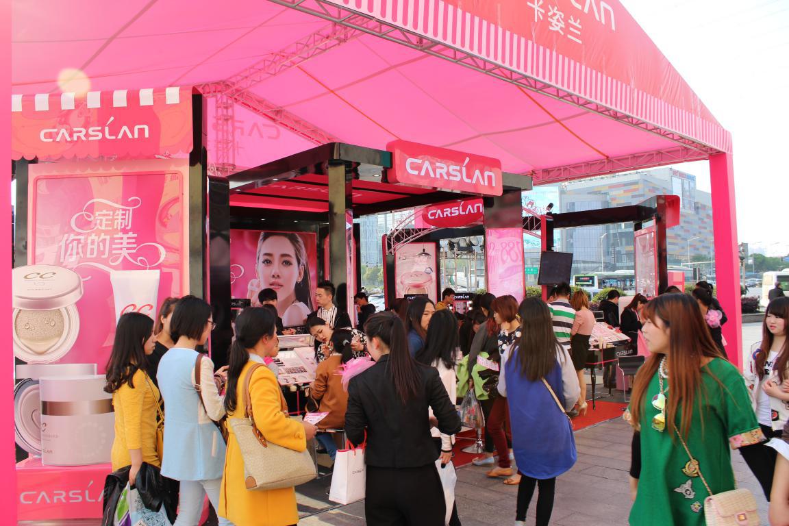 位于紅星通程廣場的卡姿蘭中國彩妝周的主會場,毗鄰長沙國際會展中心、湘府百貨,因而人流量大??ㄗ颂m特有的“浪漫粉”吸引了來往顧客的駐足,現場“滿300享600”的促銷力度,以及彩妝體驗令各年齡段的女性顧客踴躍參與,彩妝師們的精心講解和精湛的化妝技巧也得到了體驗者的一致肯定。