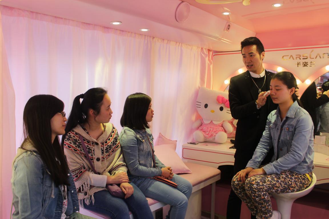 聽美妝沙龍、現場體驗美甲、掃描卡姿蘭官方二維碼后上傳照片即刻打印、參加卡姿蘭官方微信的抽獎活動……興高采烈的登上卡姿蘭移動沙龍CC巴,享受由卡姿蘭首席彩妝師高級定制的完美妝容打造,小A和小伙伴愉快的感受著卡姿蘭帶來的新奇和美麗??粗R子里美美的自己,小A和小伙伴真誠的寫下了自己的美麗心愿:要學會簡單的化妝和打造美麗臉蛋。在現場“滿300享600”的鉅惠下,她們更是買到了自己中意的卡姿蘭氣墊CC霜、眼唇卸妝液等多款產品,并參與到卡姿蘭舉辦的“尋找最佳女主角”全國大型互動節目中。