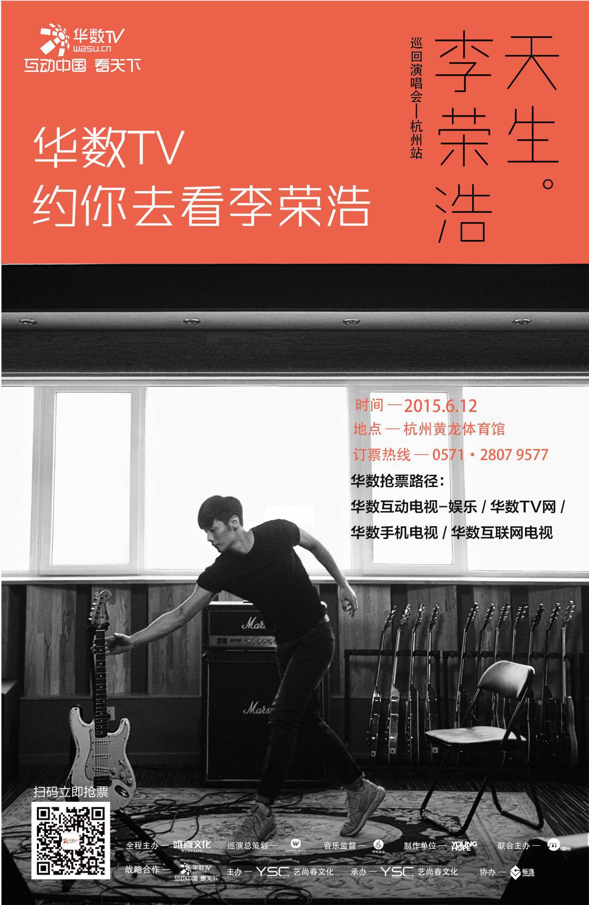 就在粉絲們紛紛為搶不到門票而著急失落時,華數TV送來了福利。作為“天生李榮浩演唱會杭州站”的唯一戰(zhàn)略合作媒體,華數TV為粉絲們爭取到限量門票。即日起至6月8日,登陸華數TV旗下四大平臺——華數互動電視“娛樂”頻道、華數TV網PC端和手機WAP頁面(www.wasu.cn)、華數互聯網電視,在“李榮浩”活動專區(qū)參與搶票,就有機會與偶像相約黃龍體育館,盡情享受音樂才子帶來的非凡之夜。關注“華數娛樂”官方微信,也有機會贏取演唱會門票。