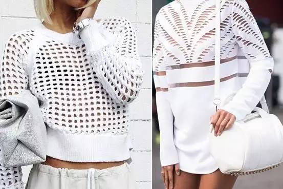 白色不只可以純潔,也可以性感,這一季不妨投資一些具透視設(shè)計(jì)感的服裝 (甚至是配件),上下身只要有一件較有設(shè)計(jì)感的服裝,整個人就立刻變得很有個性。