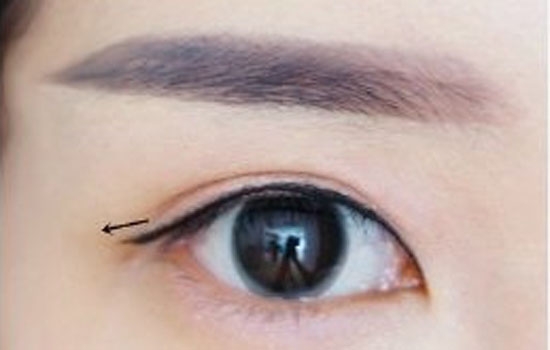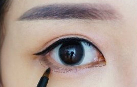 5.用眼線膏畫出眼線外形,眼尾稍稍拉長,并填滿睫毛根部內外眼線。