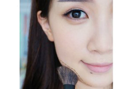 11.粉色腮紅以打圓的方式掃在蘋果肌上,腮紅面積稍大。