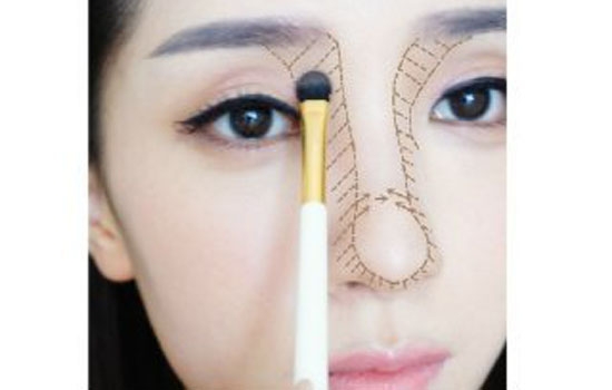 3.用粉底刷沾取遮瑕膏刷在眉尾下方,提亮眉尾下方眉弓處。
