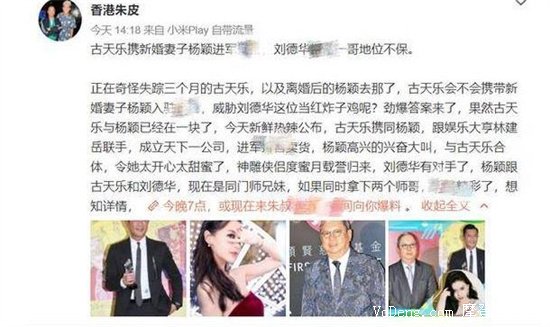 近年,香港著名娛記朱皮也發文章高調談論離婚后的楊穎的婚姻狀態,并稱楊穎是古天樂的新婚妻子,還夸大其詞,二人已經成立一家公司等等,隨后,楊穎工作室第一時間出面辟謠。最近,楊穎也是對其上訴,之后該博主被判決要求向楊穎致歉,并賠款叁萬元。