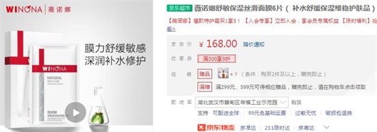 2、薇諾娜舒敏保濕絲滑面膜6片——168