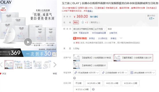 3、玉蘭油抗糖小白瓶精華面膜15片——369