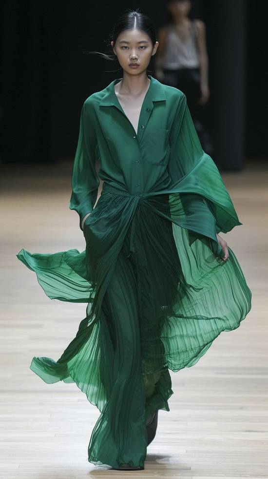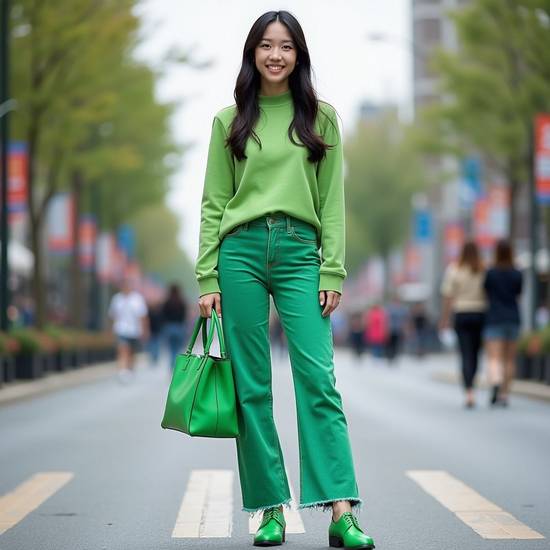 紫綠撞色其實是隱藏王炸!關鍵選低飽和綠——橄欖綠工裝襯衫+紫褲子復古文藝,薄荷綠背心+薰衣草紫闊腿褲清涼夏日感,搭配棕色樂福鞋,秒變復古畫報女郎。