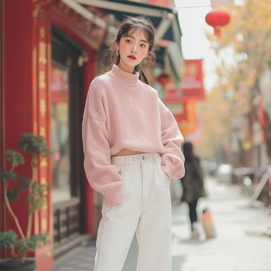 3. 粉色上衣:甜酷少女心